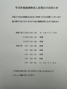 さて、この度は年末年始の営業日についてのお知らせがございます。