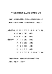 年末年始廃棄物受入営業日のお知らせ